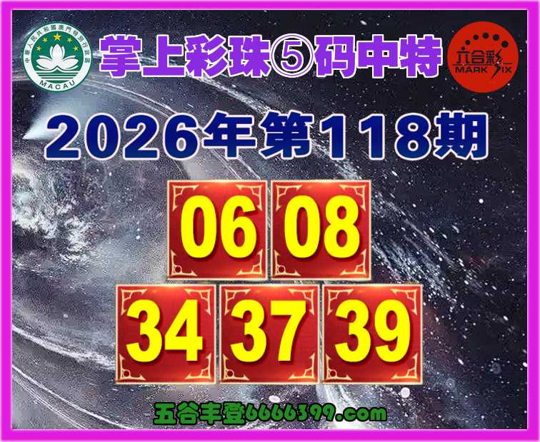 118期: 🌅『掌上彩珠』 🌅⑤码中特🌅【06.08.34.37.39】开:08
